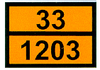 PETROL or GASOLINE หมายเลข UN = 1203 เป็นของเหลวไวไฟมาก การกำหนดเลขต่างๆ รายละเอียด... ขนาดป้าย